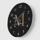 Elegant Black Gold Monogram Feminine Girly Script Name Large Clock