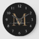 Elegant Black Gold Monogram Feminine Script Name Large Clock
