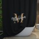 Elegant Black Gold Monogram Feminine Script Name Shower Curtain