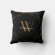 Elegant Black Gold Monogram Geometric Name Script Throw Pillow
