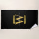 Elegant Black & Gold Monogram Modern Script Beach Towel