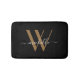 Elegant Black Gold Monogram Script Name Initial Bath Mat