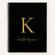 Chic Elegant Gold Monogram Script on a chic Black Spiral Notebook. Easy to customize with your own name and details. Perfect for your luxury lifestyle! Please contact us at cedarandstring@gmail.com if you need assistance with the design or matching products.