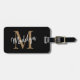 Elegant Black Gold Monogram Script Name Stylish Luggage Tag