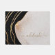 Elegant Black Gold Monogram Script Name Welcome Doormat