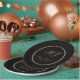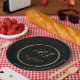 These elegant personalized wedding paper plates feature the bride's and groom's monogram initials along with their first names and wedding date in faux gold calligraphy on a simple black background bordered by a thin gold and black round frame. Please check out our I Love Weddingz shop to find more selections in this collection. Designed by Susan Coffey.