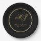 Elegant Black Gold Monogram Script Wedding Paper Plates