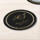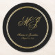 Elegant Black Gold Monogram Script Wedding Round Paper Coaster