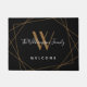 Elegant Black Gold Monogram Welcome Name Script Doormat