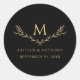 Elegant Black & Gold Monogram Wreath Wedding Favor Classic Round Sticker
