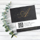 This gorgeous faux leather design has a swooping gold monogram and can be personalized with your name. On the back you can add your business contact details and a QR code.
