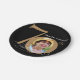 Elegant Black Gold Photo 70th Birthday Party Paper Plates. And elegantly designed special birthday celebration invitation, featuring a custom photo of birthday person and script calligraphy with vintage flourish elements. Simple enough to fit a variety of themes and colors!