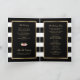 Elegant black and white striped floral wedding program featuring watercolor blush pink, ivory and peach flowers and gilded greenery. Matching items available.