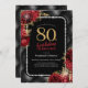 Elegant Black Gold Red Floral 80th Birthday Party Invitation