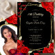This elegant red, gold, and black 18th birthday debut invitation has red roses red butterflies with a personalizable template to create your own message. Add your photo on the back. The invitation template is customizable in the listing editor and is also available as a digital download that's printable after you personalize it.