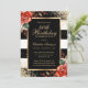 Elegant Black Gold Red Roses 40th Birthday Invitation