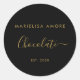Elegant Black Gold Script Chocolatier Qr Code Classic Round Sticker