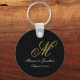These elegant black custom monogram wedding key chains make a unique wedding favor to give to your guests or wedding party. The chic design template features the groom's last name monogram initial along with the bride's and groom's first names and wedding date in faux gold on a simple black background to personalize. Please check out our I Love Weddingz shop to find more selections in this collection. Designed by Susan Coffey.