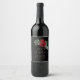 Elegant Black & Gold Script Red Floral Wine Label