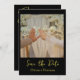 Announce your big day in style with this elegant black and gold Save the Date card. Featuring a modern handwritten script paired with sleek minimalist typography, this design is perfect for couples who love timeless sophistication. Add your favorite photo and customize all text for a personal touch. Ideal for modern, classy, and romantic weddings.