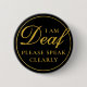 Elegant Black Gold Script Speak Clearly Deaf Button