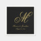 These elegant custom monogram wedding paper napkins feature the groom's last name monogram initial along with the bride's and groom's first names and wedding date in faux gold on a simple black background. Please check out our I Love Weddingz shop to find more selections in this collection. Designed by Susan Coffey.