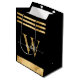 Girly Minimalist Simple Clean Black And Gold Monogram Name Signature Script Custom Personalized Gift Bag. This design featuring your first name in a pretty hand lettered style swash tail font signature typography (or calligraphy) on gold and white with black gold striped border on black. These are easy to customize it. This feminine gift bag great for housewarming gift, also for birthday, bridal shower, mother’s day, baby shower, wedding, sweet 16 birthday party, for graduation party gift and It’s for the girl who loves uniqueunique minimalist things.