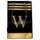 Elegant Black Gold Striped Monogram Girly Script Medium Gift Bag