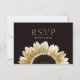 These bold but elegant 5" x 3.5" wedding RSVP response cards feature a big sunlit gold sunflower on a black background. The back has placeholders with lines for the guest to fill their name and to select their choice for attending.