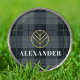 Elevate your golf game with these sophisticated personalized golf ball markers that feature a classic black and gray tartan plaid pattern adorned with an elegant gold emblem. Crafted for golf players who appreciate the finer things in life, these refined markers are not just accessories but statements of style on the green. Make a lasting impression with a customizable name to create the perfect gift for dads, grandfathers, husbands, friends, or any golf lover. Give the gift of timeless elegance and personalized luxury to the golf enthusiast in your life.