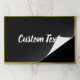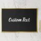 This black paper placemat has a faux (not foil) border. An elegant white script is in the center. You can edit the script to show your custom text.