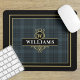 Add a dash of sophistication to your corporate or home office with this elegant mouse pad that features a classic gray and black windowpane plaid pattern with an elegant gold emblem. Personalize it with a name and initial to create a thoughtful gift for family, friends, or coworkers. Designed to add an elegant touch to any desk, this mousepad is ideal for home office, corporate, or school use.