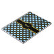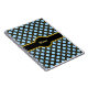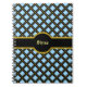 Elegant black and golden diamond pattern on turquoise background Notebook. Shine text can be customized.
