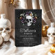 Elegant Black Gothic Floral Skull Halloween Invitation