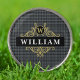 Elevate your golf game with these sophisticated personalized golf ball markers that feature a classic black and gray glen plaid pattern adorned with an elegant gold emblem. Crafted for golf players who appreciate the finer things in life, these refined markers are not just accessories but statements of style on the green. Make a lasting impression with a customizable name and initial to create the perfect gift for dads, grandfathers, husbands, friends, or any golf lover. Give the gift of timeless elegance and personalized luxury to the golf enthusiast in your life.