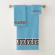 Elegant black Greek pattern on teal turquoise Bath Towel Set.
