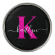 Elegant Black Hot Pink Script Monogram Divot Tool