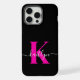 Elegant Black Hot Pink Script Monogram iPhone Case