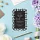 These formal elegant 5" x 7" acrylic wedding invitations feature a black faux lace design with white lettering. The introduction, "Join us in celebrating the wedding of," the wedding couple's full names, wedding date, wedding time, location, location address, and reception information.