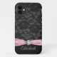 Elegant Black Lace Pink Satin Ribbon and Diamond Case-Mate iPhone Case