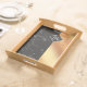 Elegant Black Marble & Copper Foil Script Monogram Serving Tray