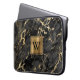 This elegant laptop sleeve features a background pattern of black marble embellished with gold veins. Personalize it with your monogram initial in black on a gold brushed metal square.