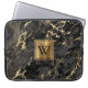 Elegant Black Marble Gold Brushed Metal Monogram Laptop Sleeve