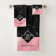 Elegant Black Marble & Pink Foil Monogram Bath Towel Set