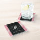 Elegant Black Marble & Pink Foil Monogram Glass Coaster