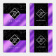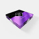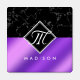 Elegant Black Marble & Purple Foil Monogram Coaster Set