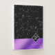 Elegant Black Marble & Purple Foil Monogram Pocket Folder
