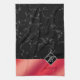 Elegant Black Marble & Rosé Red Foil Monogram Kitchen Towel