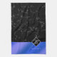 Elegant Black Marble & Royal Blue Foil Monogram Kitchen Towel