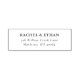 This elegant rubber stamp features a clean, minimalist design with centered text elements on a white background. The layout uses bold serif fonts for the names and address, creating a formal and sophisticated look ideal for official or ceremonial purposes. With its classic black and white color palette, this stamp conveys a timeless elegance, perfect for personalizing envelopes or documents with a touch of professionalism. The customizable nature allows you to easily personalize it for any special occasion or event.